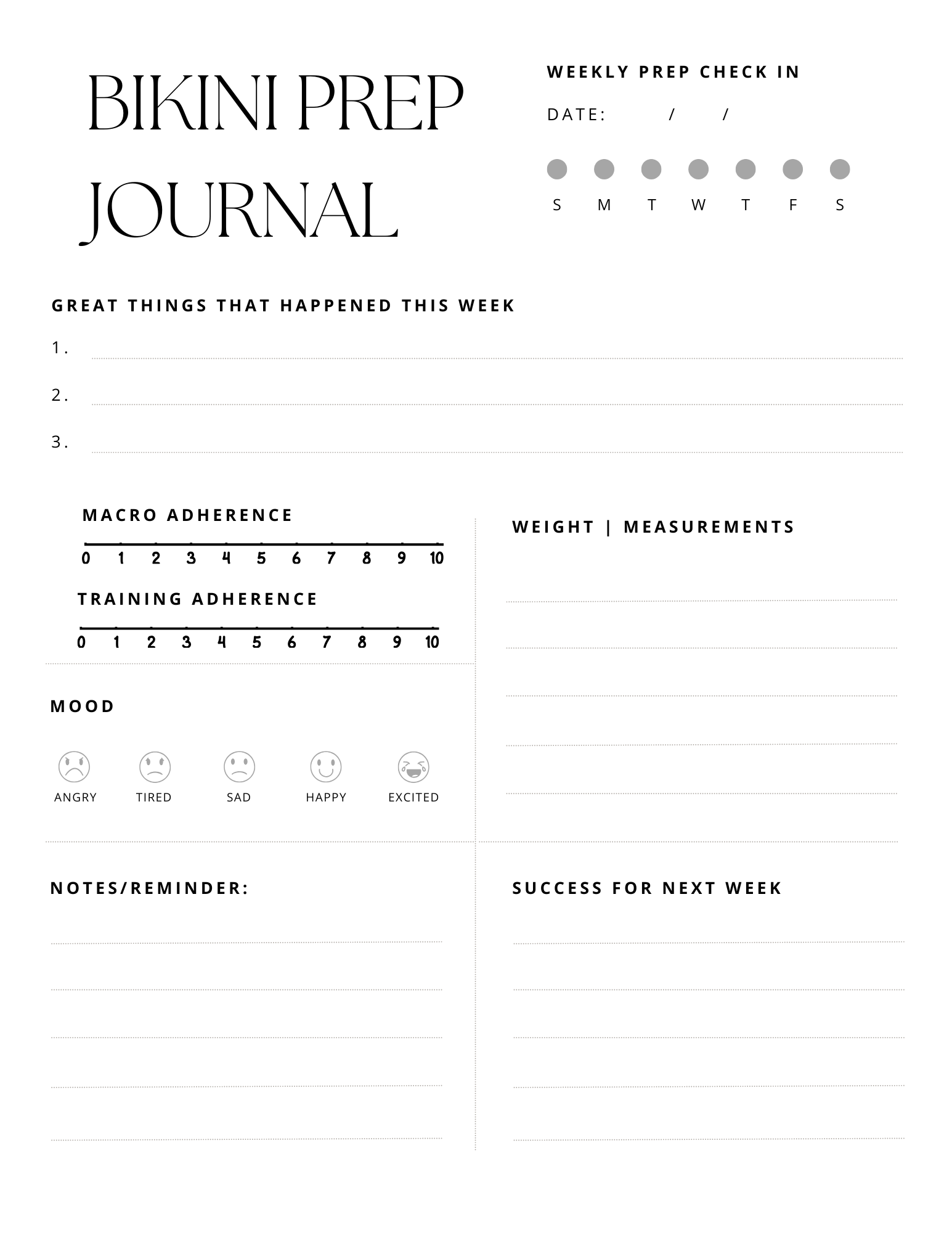 Weekly Bikini Prep Journal | NPC Competition Planner | Digital Download (Editable & Printable)- Basic Theme