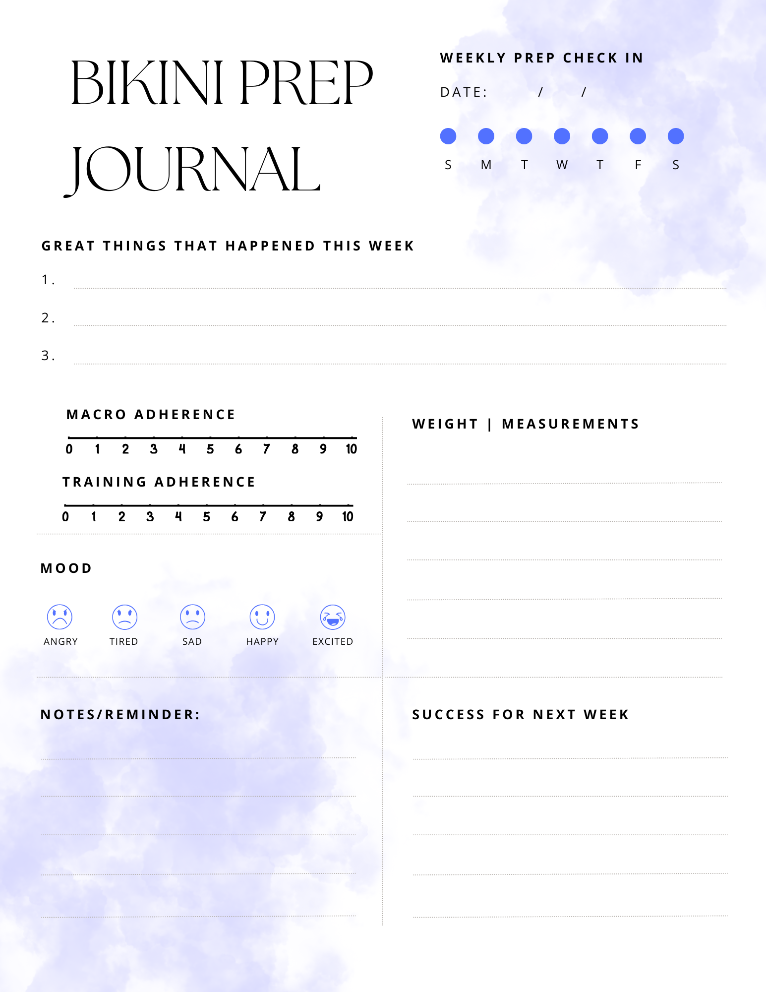 Weekly Bikini Prep Journal | NPC Competition Planner | Digital Download (Editable & Printable)- Blue Theme