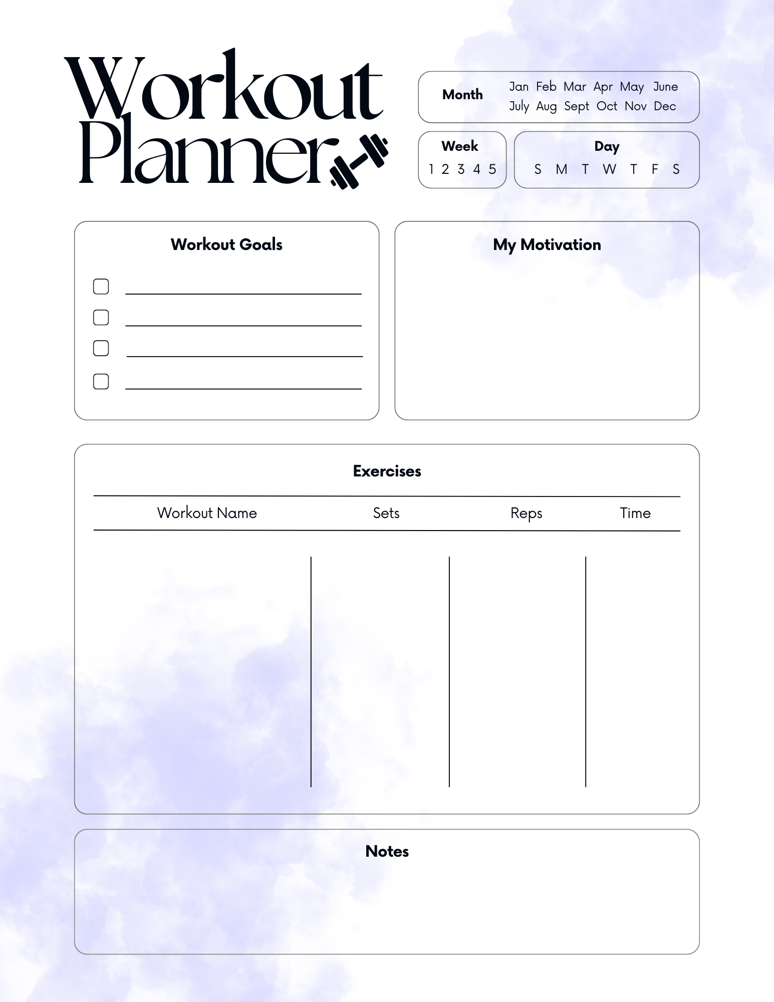 Daily Workout Planner | Printable & Editable Digital Download for Fitness, Bikini Prep & Wellness Goals- Blue Theme